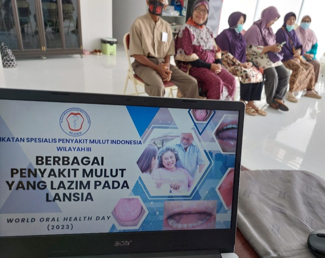 Penyuluhan disampaikan oleh — drg.Suniti, Sp.PM., CH,CHt(IACT-USA), CHM,CI — dengan tema “Berbagai Penyakit Mulut yang Lazim Pada Lansia”.